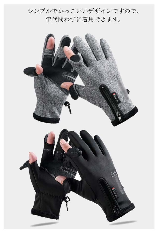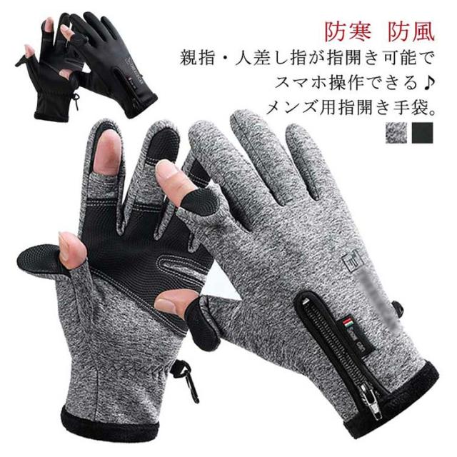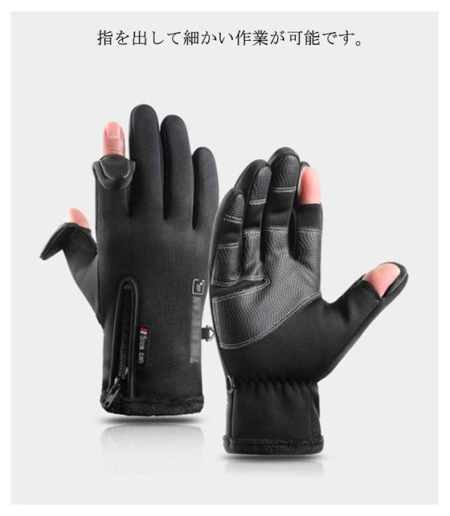 手袋 メンズ レディース 防寒 防風 防水 指開き 指なし グローブ 5本指 手ぶくろ 撥水 指先スリット 2WAY スマホ対応 裏起毛 滑り止め 自転車 バイク 作業用 ゴルフ アウトドア フィッシング 通勤 通学 スポーツ 冬 冬用 男女兼用 ブラック グレー