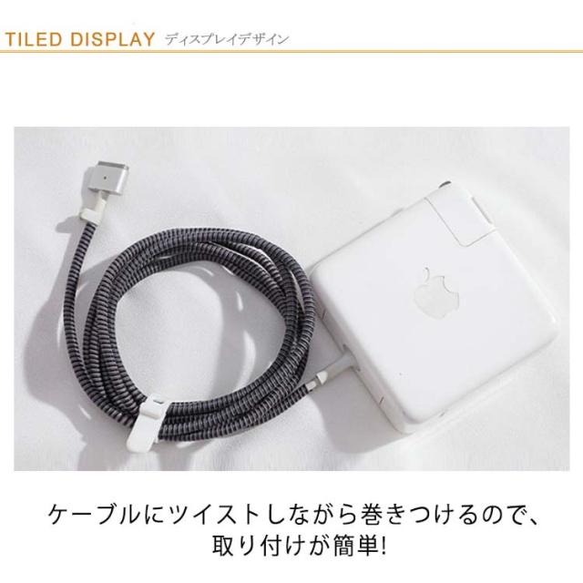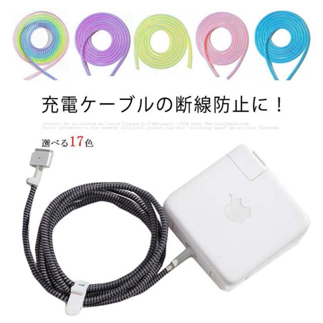 | 充電ケーブルの断線防止に! ケーブルにツイストしながら巻きつけるので、取り付けが簡単! ロングサイズなので、必要な長さにハサミで切ってご使用頂けます。 断線防止、汚れ防止、折れ防止、ペット噛癖対策など大活躍。 カラフルなので見た目もかわいくなりそう! スマホの充電ケーブルだけでなく、PCのケーブルにも利用できます。 | |