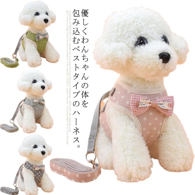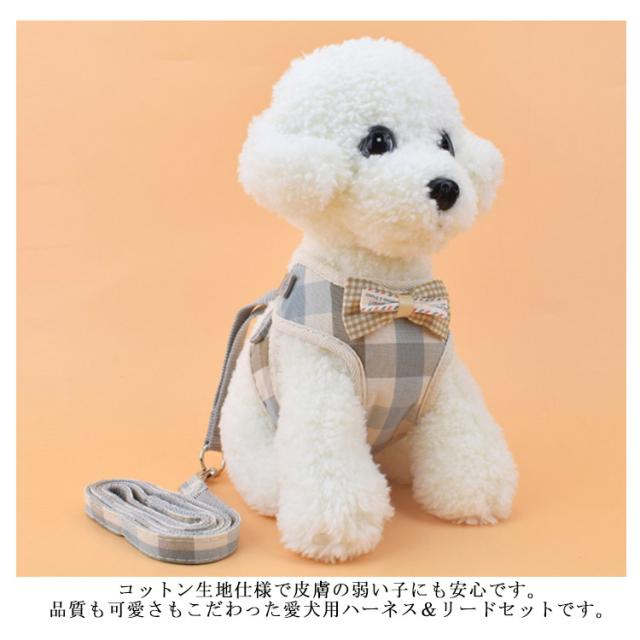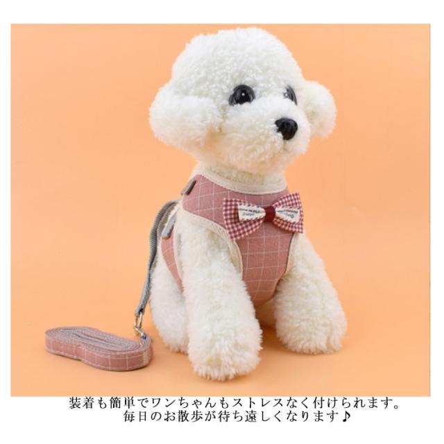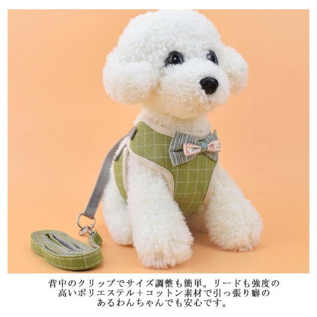 送料無料 犬 ハーネス 小型犬 犬用 リード いぬ 胴輪 子犬 引き紐 ペット 首輪 かわいい おしゃれ 服 ベスト ドット柄 チェック柄 ワッペン 可愛い かわいい 愛犬グッズ 120cm ペットグッズ お出掛け 外出 ストライプ