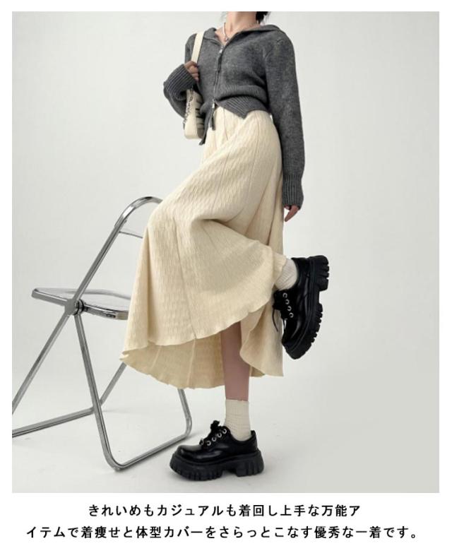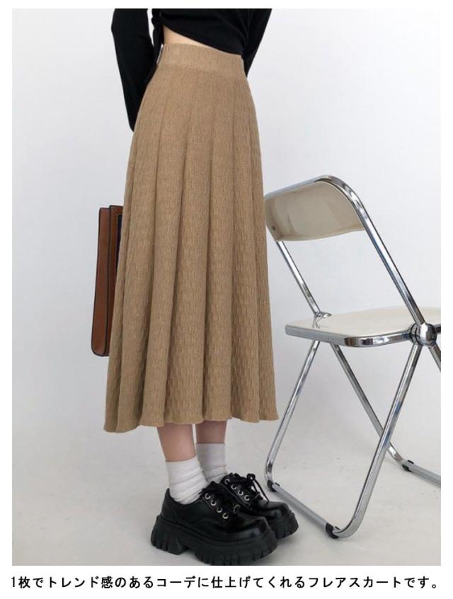 ニットスカート プリーツスカート ハイウェスト ロングスカート スカート レディース ボトムス 大人 ベージュ グレー 秋冬 おしゃれ きれいめ 可愛い エレガント 上品 S M L XL