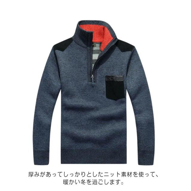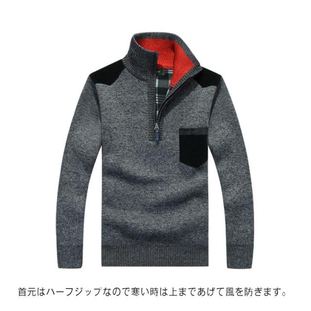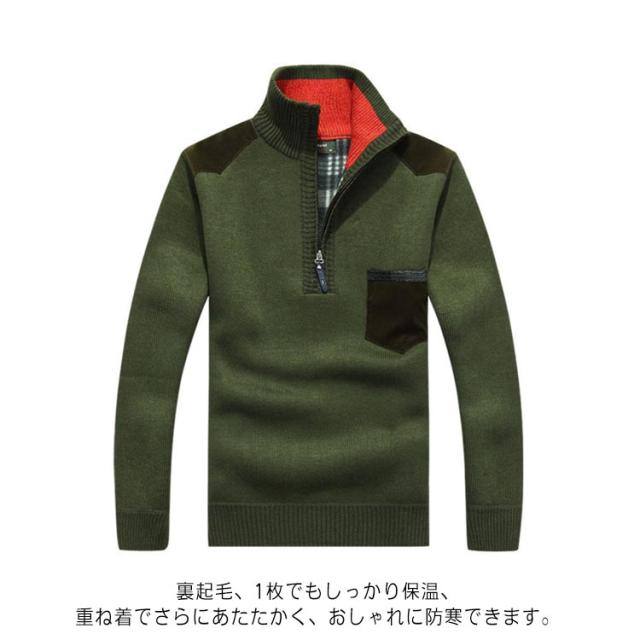 ハーフジップ ニットセーター 裏起毛 メンズ タートルネック ニットトップス 立襟 長袖 セーター アウター 厚手 あったか 防寒着 保温 秋冬 カジュアル メンズファッション 父の日 通勤 サラリーマン ビジネス M L XL 2XL 3XL 4XL