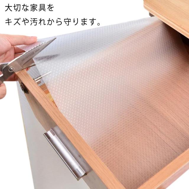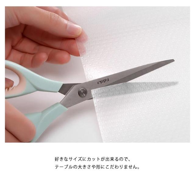 | 大切な家具をキズや汚れから守ります。 好きなサイズにカットが出来るので、テーブルの大きさや形にこだわりません。 飲み物などをこぼしても、サッと一拭きで簡単きれい。 表面が滑り止め加工を施すことで物を上に置いても滑りにくいです。 ダイニングテーブルやリビングテーブル、戸棚、クローゼット、学習書斎デスク、座卓やコタツ、ローチェスト、TVボードなどにも。 テーブルの質感を損なわない透明タイプなので、どんなお部屋にもぴったり。 | |