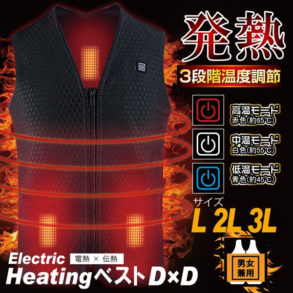 ヒロコーポレーション HIRO CORPORATION ヒロ・コーポレーション ヒーターベスト 温熱ベスト ヒートベスト ベスト ジレ チョッキ ジャケット ヒーター 熱線 温熱 電熱 発熱 暖かい 温かい ホット 熱 保温 内側 中 暖める 温める 暖房 暖房器具 スポーツ観戦 ゴルフ 屋外 散歩 ウォーキング 外出 お出かけ キャンプ 通勤 通学 会社 学校 作業 トップス インナー アウター ファッション 服 上半身 身体 下 寒さ対策 冷え対策 寒さ 対策 秋 冬 寒い 冷え 防寒 防寒具 防寒服 外 バッテリー モバイルバッテリー 充電 黒 BLACK HCDLDJ001