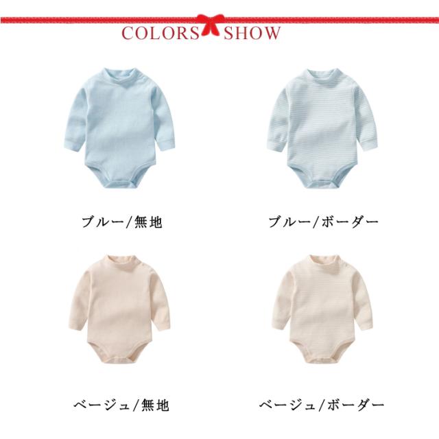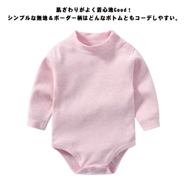 送料無料 長袖 ロンパース ハイネック ボディTシャツ ボディスーツ タートル 長袖 肌着 コットン ロンパース 韓国子供服 キッズ服 ベビー服 カバーオール 無地 ボーダー 男の子 女の子 ナチュラル シンプル 出産祝い