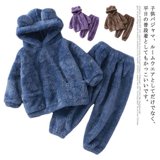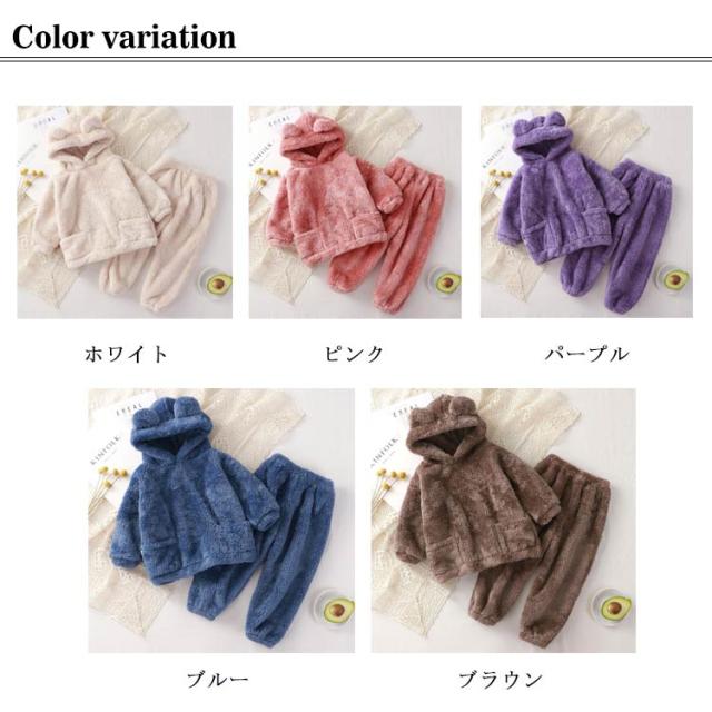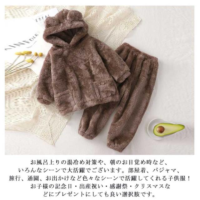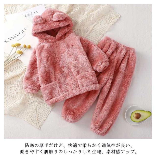 パジャマ ルームウェア キッズ 子供 秋冬 女の子 上下セット もこもこ ナイトウェア フリースパジャマ 着ぐるみ 耳付き 部屋着 防寒 保温 暖かい おしゃれ 可愛い 長袖 トップス ズボン フリース ボア ふわふわ ポケット 着心地 ジュニア