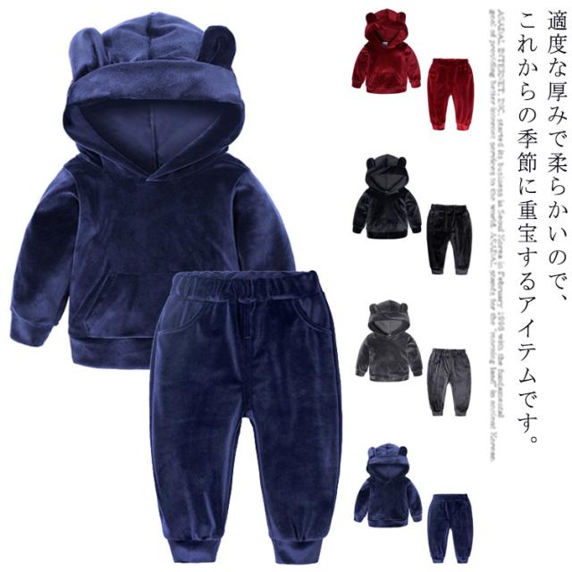 スポーツウェア 上下セット キッズ ルームウェア 子供 カジュアル セットアップ フリース ふわふわ 防寒 部屋着 暖かい フード付き 柔らかい もこもこ パジャマ アウター くまの耳 冬用 長袖パジャマ 女の子 男の子 防寒 厚手 モコモコ