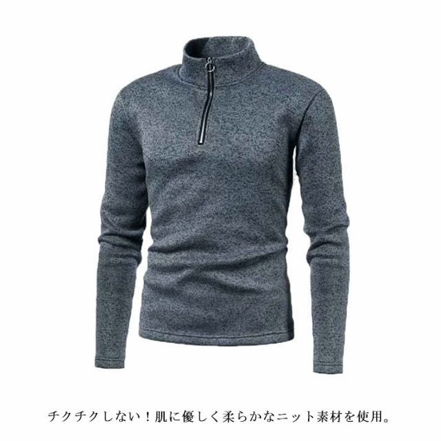 ジップアップ ニット セーター メンズ ジップニット ハーフジップ スタンドカラー 立ち襟 ニット トップス 厚手 冬 暖かい あったか スリム セーター ハイネック 無地 zip ジャケットインナー セーター キレイめ ビジネス 秋服 冬服 春 秋 冬 送料無料