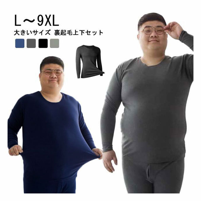L-9XL 大きいサイズ 裏起毛 ヒートテック 上下セット メンズ 送料無料 厚手 薄手 大きめ 極暖 冬用 アンダーウェア 肌着 綿 長袖 インナー クルーネック 丸首 アンダーシャツ 長ズボン インナーウェア 防寒着 保温 発熱 あったか 冷え対策 秋冬 ストレッチ