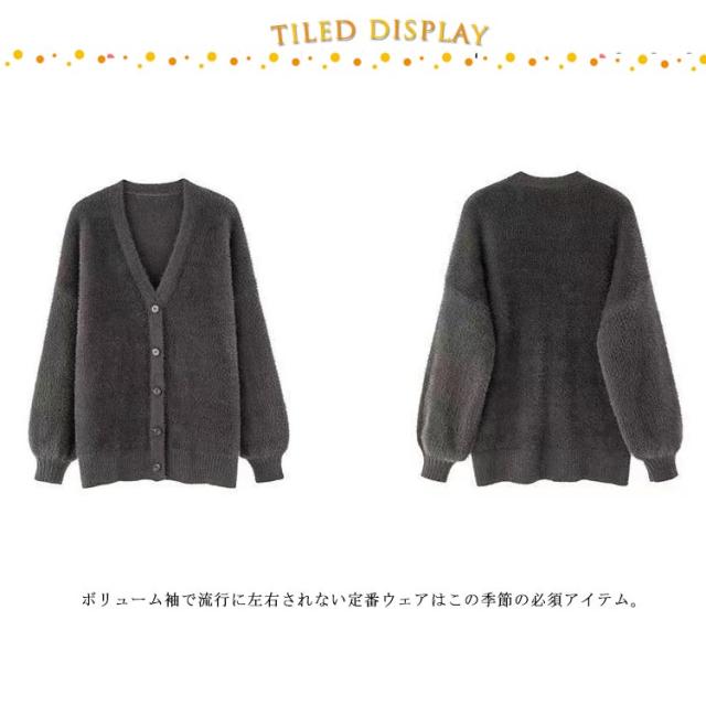 ふんわり カーディガン レディース 長袖 ニットセーター ニットトップス ニットカーディガン バルーンスリーブ 厚手 ニット カーディガン Vネック ゆったり エレガント フェミニン おしゃれ S M L XL 2XL 3XL