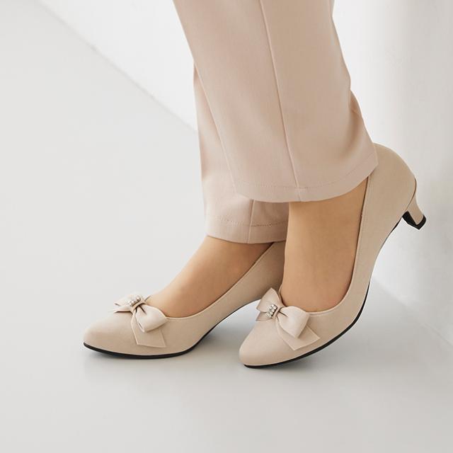 エレガントなリボンモチーフとビジューがきらびやかリボンモチーフビジューパンプス