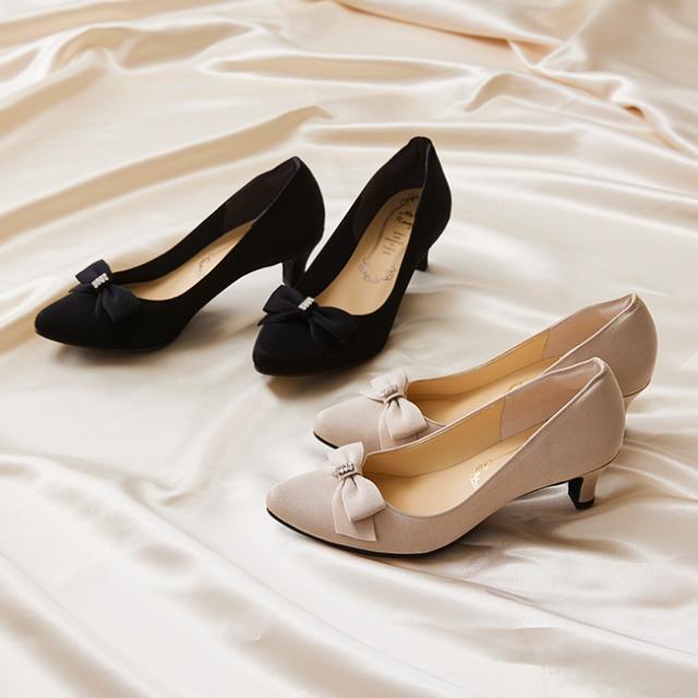 パンプス 走れる 履きやすい 痛くない パーティー ビジュー リボン フォーマル 結婚式 卒業式 入学式 日本製 送料無料