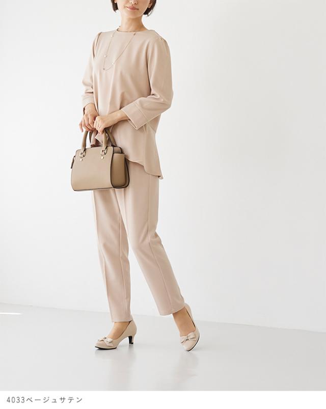 上品な質感のサテン生地で施されたリボンモチーフが甘すぎない大人な可愛さ。