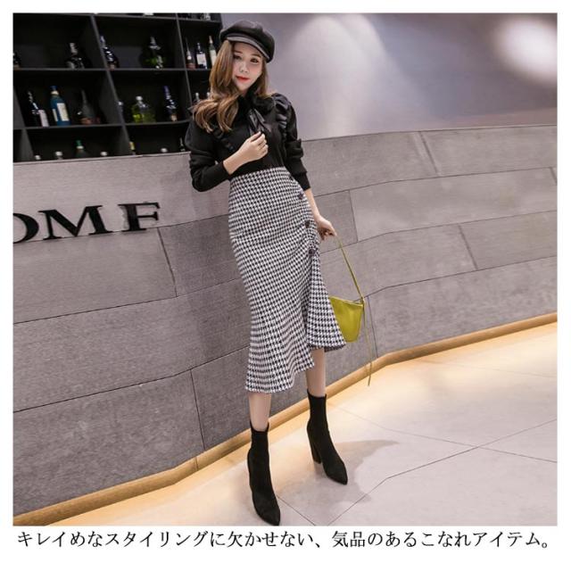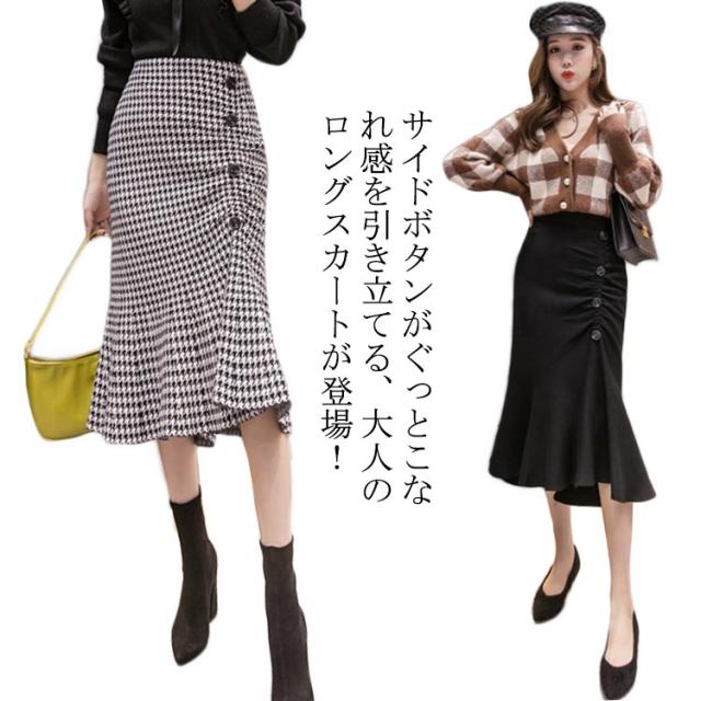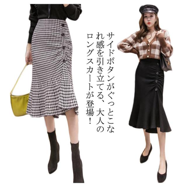 マーメイドスカート スカート 千鳥柄 ミモレ丈スカート ロングスカート マーメイド ハイウエストスカート 膝下丈 フレア バックスリット カジュアル キレイめ 大人 かわいい 春 秋 冬 送料無料