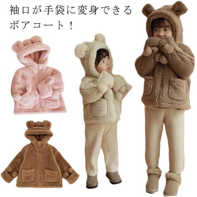 ボアコート キッズ 子供服 ボア ジャケット 女の子 男の子 手袋付き 子供コート 裏ボア 裏起毛 暖かい 防寒 アウター 上着 ブルゾン クマ耳 フード付き ふわふわ もこもこ 暖かい あったか 保温 冬服 秋服