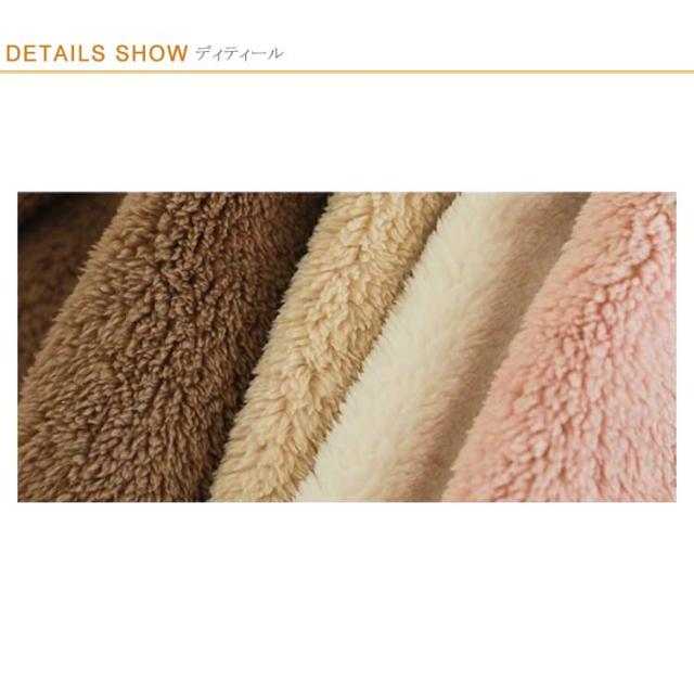 | 袖口が手袋に変身できるボアコート! ふわもこボアがとっても暖かく、寒い日もしっかり防寒していただけます。 肌ざわりやわらかでストレスフリーな着心地です。 ファスナーをトップまで閉めることで首周りまで暖かく、クマ耳付き帽子がアクセントに。 ボトムスを選ばない丈感で、スカートやパンツ、ワンピースとも相性抜群です。 | |