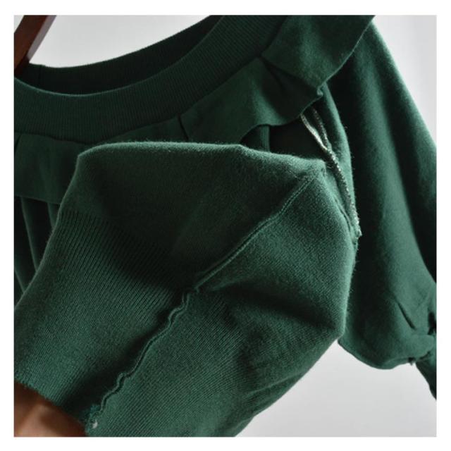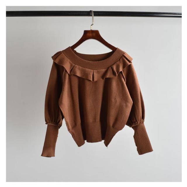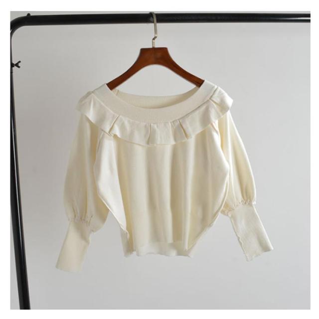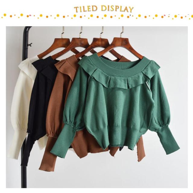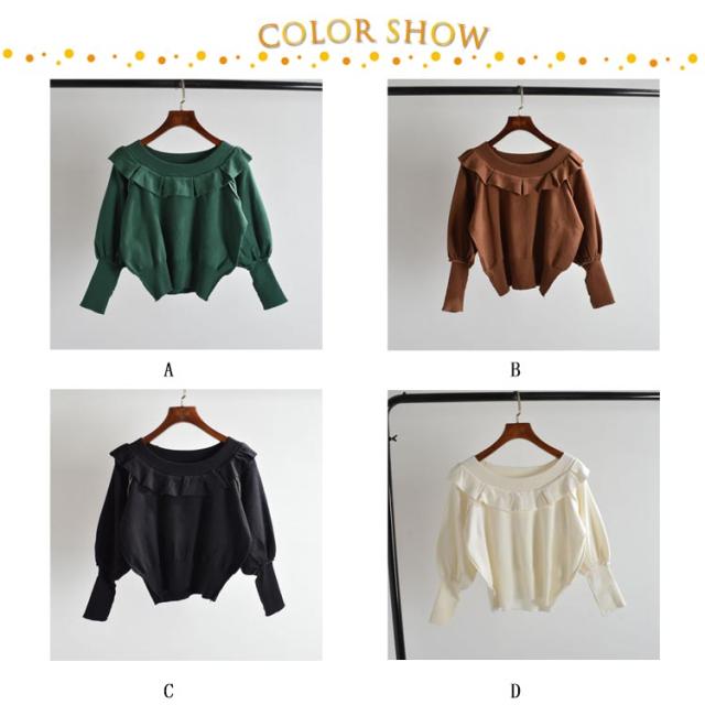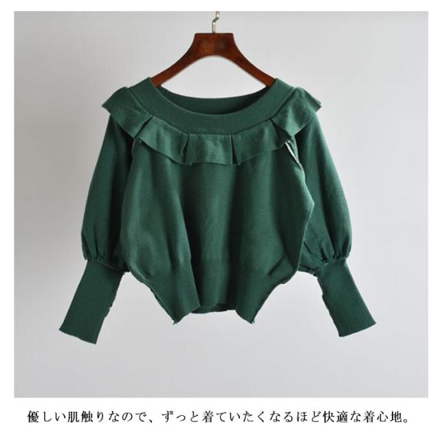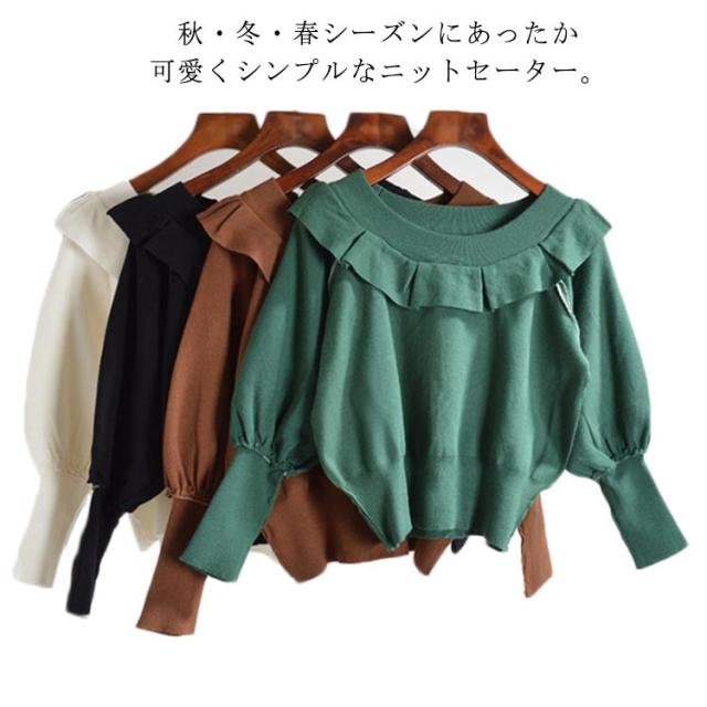 ニット セーター レディース ニットセーター 長袖 秋 春 春秋 ゆったり クルーネック フリル バットスリーブ 無地 シンプル ゆったり カットソー ショート丈 オフィス カジュアル 通勤 OL セーター 送料無料