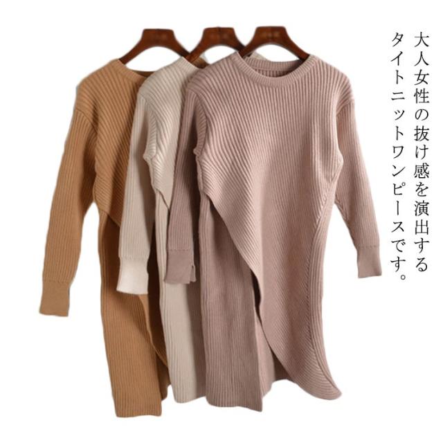 ニットワンピース 無地 ロング ニット ワンピース 膝丈 長袖 春秋ワンピ クルーネック タイトワンピース タイト 秋 冬 長袖 着痩せ 秋冬 20代 30代 40代