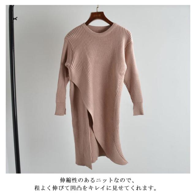 | 大人女性の抜け感を演出するタイトニットワンピースです。 伸縮性のあるニットなので、程よく伸びて凹凸をキレイに見せてくれます。 シンプルなデザインで着まわし力も◎ | |