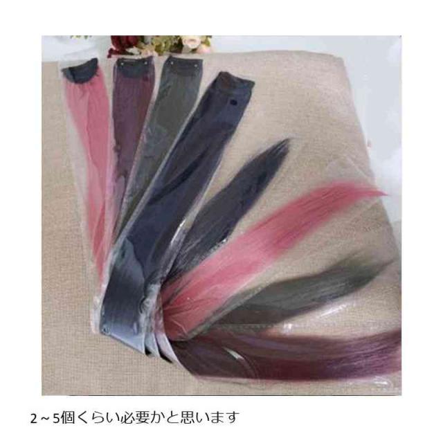 | ワンタッチで簡単装着のカラーエクステです クリップ式でパチッと止めるだけの簡単装着 耐熱180度なので、ドライヤーやアイロンなどでお好みの髪型にもできちゃいます 2〜5個くらい必要かと思います 【着用方法】 クリップを開きます 髪をすくい取って、ピンなどで髪を固定します すくった髪の下でクリップを止めます クリップがしっかり固定されたのを確かめた後、すくい取った髪を下ろしてグリップを末端部分を隠します | |