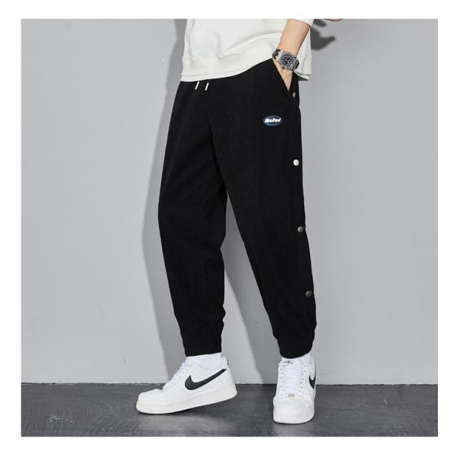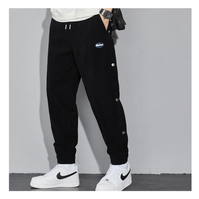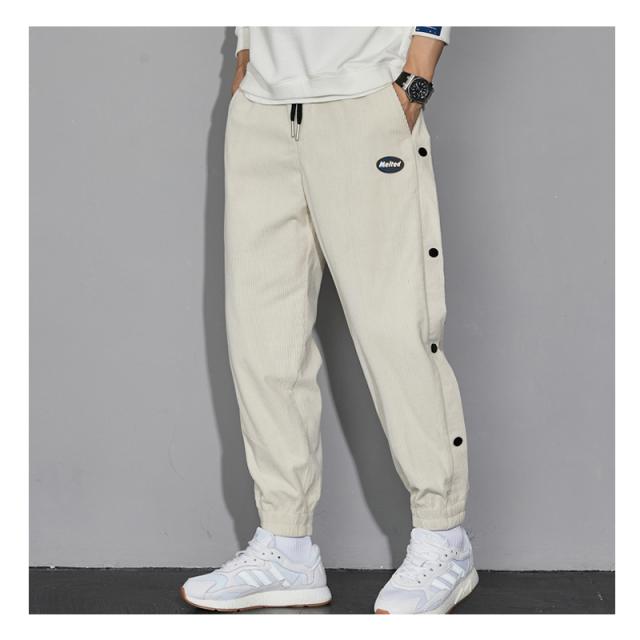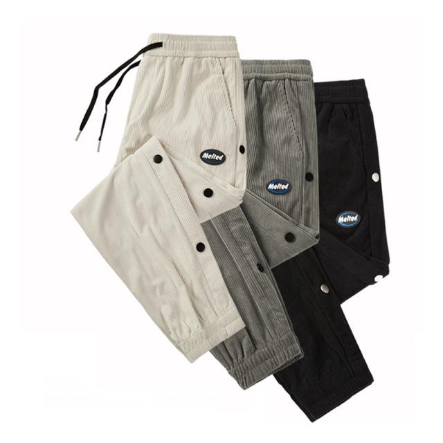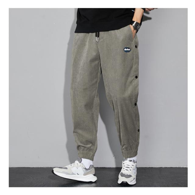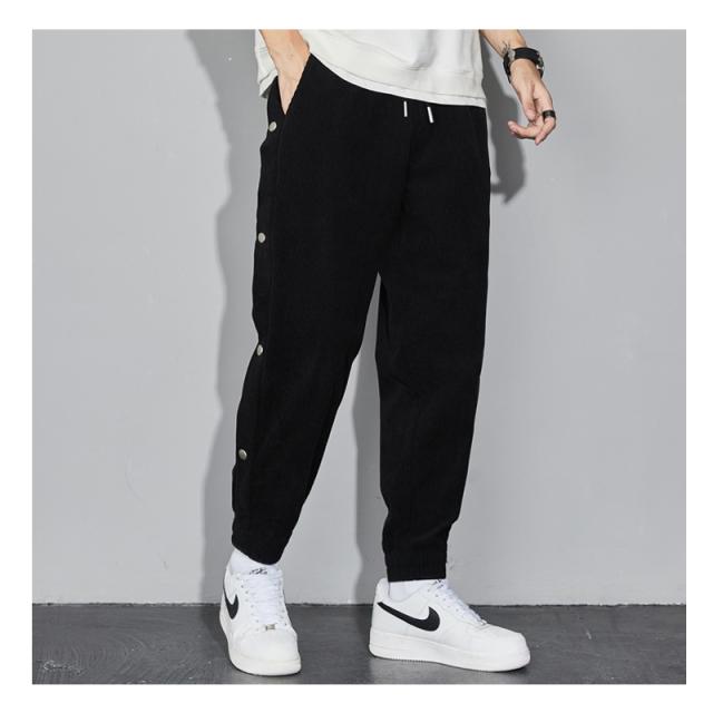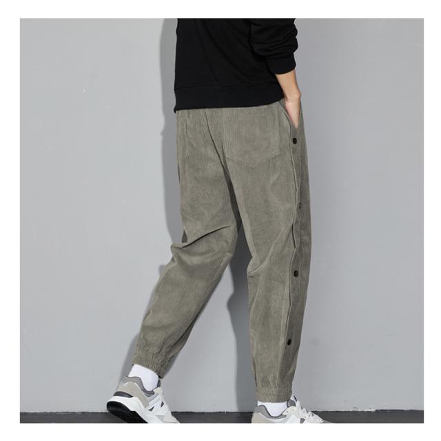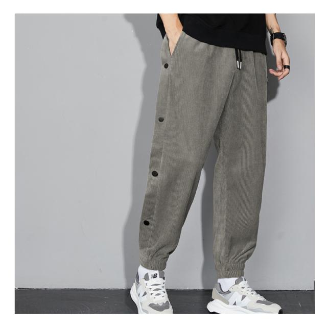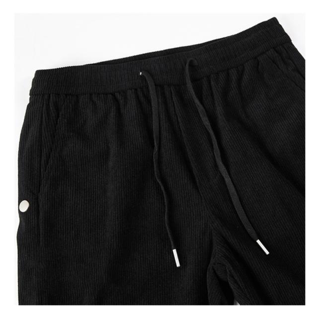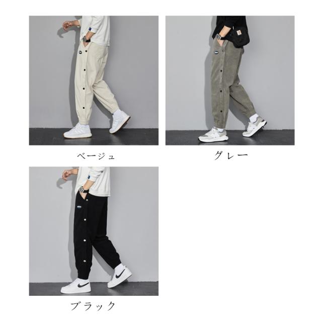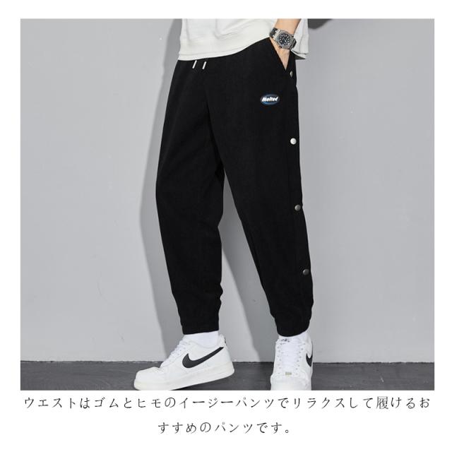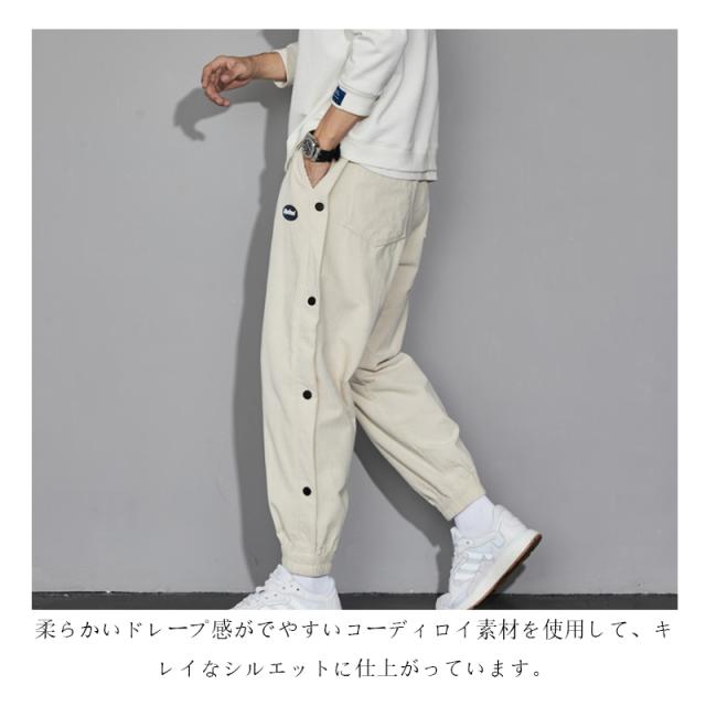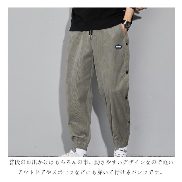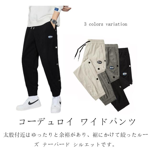 コーデュロイ ワイドパンツ メンズ テーパードパンツ ゆったり 無地 ロングパンツ ストレート スリット 大きいサイズ 裾ゴム ウエストゴム カジュアルパンツ テーパード レトロ ファッション 春 秋 冬