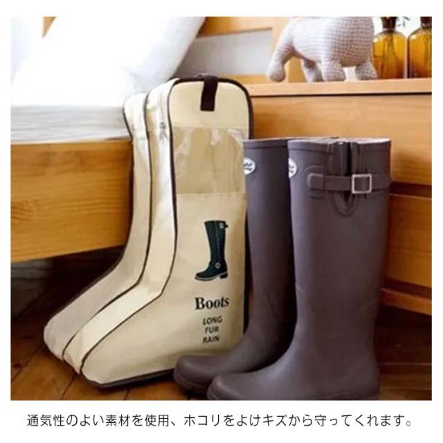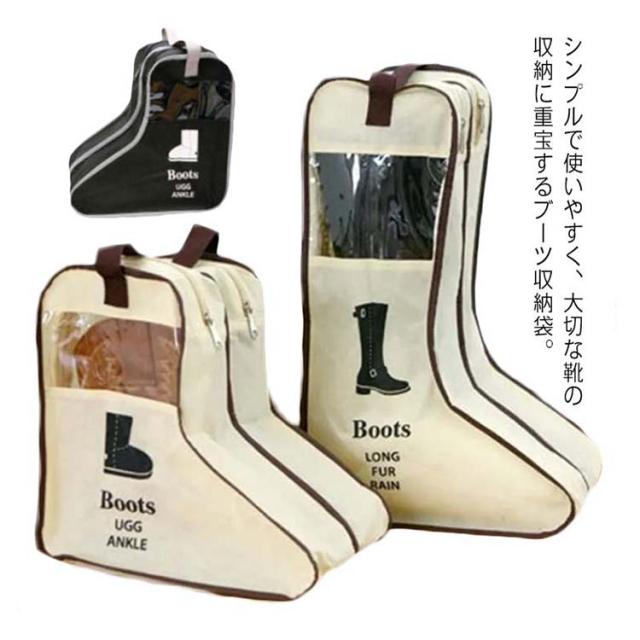 【送料無料】シューズケース 透明窓 ブーツ収納袋 靴カバー シューズバッグ シューズポーチ 靴 ロングブーツ ショートブーツ レインブーツ シューズ マルチ収納 ブーツ収納 持ち手付き スリム ファスナー 軽い 折りたたみ くつ箱 クロゼット 玄関 旅行