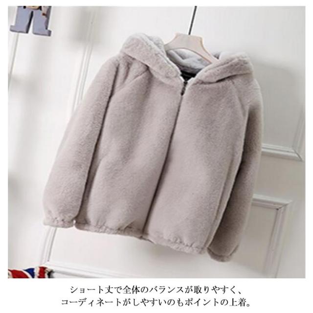ファーコート ショート丈 エコファー フェイクファー アウター フード付き ショートコート 暖かい ふわふわ もこもこ ファージャケット ファーブルゾン ボアコート ボア ジャケット 長袖 秋冬 厚手 暖かい 防寒 上着 羽織り 無地 ジップアップ カジュアル ゆったり かわいい