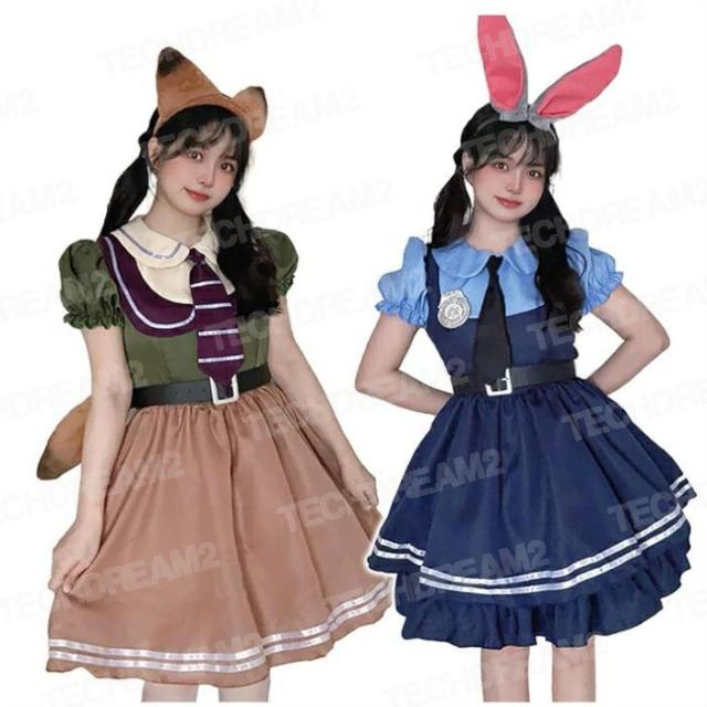 ハロウィン衣装 子供用 大人用コスプレ 可愛い 女の子男の子ウサギ警察 キツネ詐欺師 ポリス コスプレ ロリータ ワンピース レディースセット アニメ 動物大都会cosplay ネクタイ うさ耳 キツネ 耳 しっぽ カチューシャ 警察官 婦警 イベント コスチューム 仮装