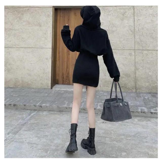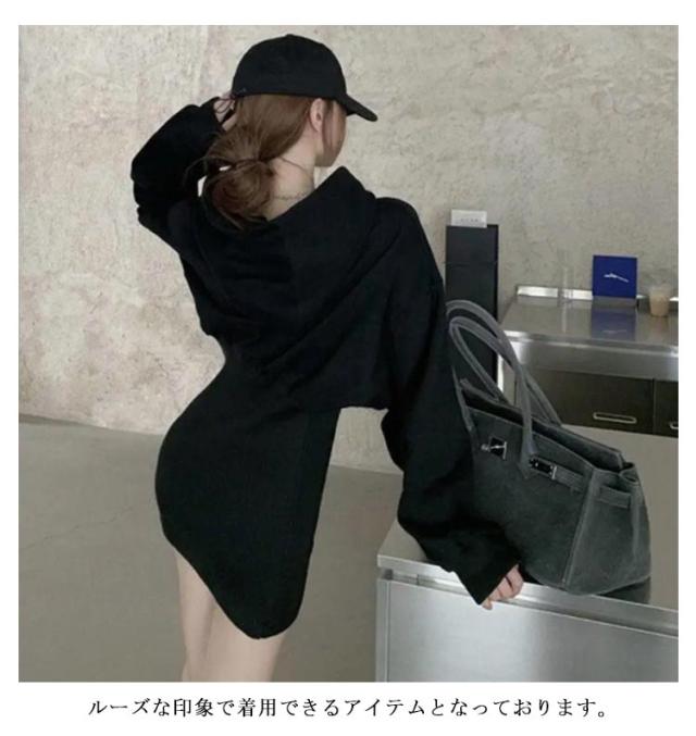パーカーワンピース タイトワンピース 裏起毛 ミニ丈 長袖 ロングパーカー プルオーバーパーカー フード付き カジュアル 着?せ 腰がくびれデザイン レイヤード 通勤 通学 シンプル ブラック S M L XL