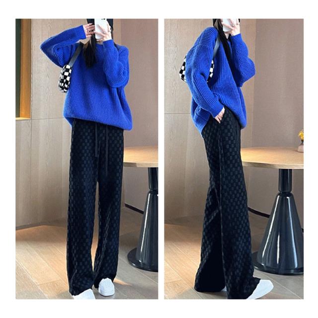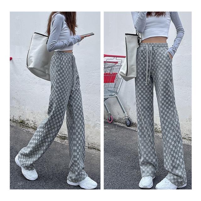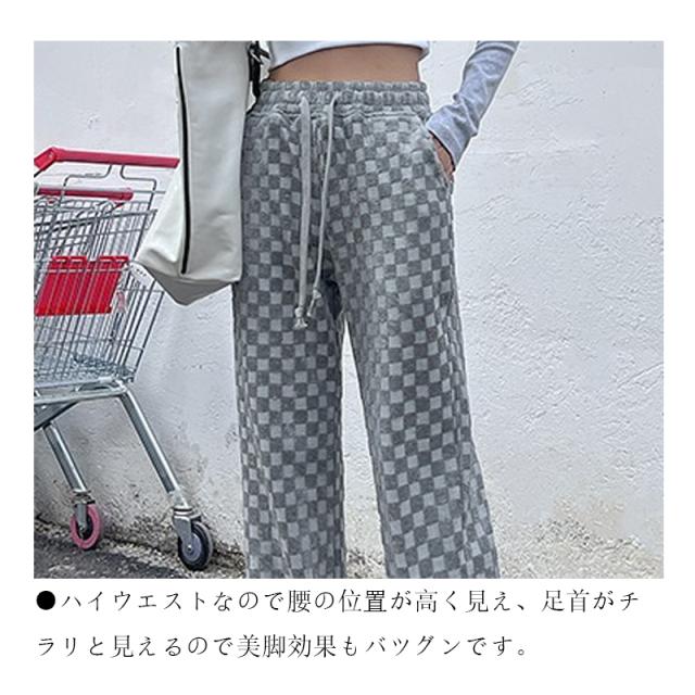 ワイドパンツ ストレートパンツ レディース チェッカーボード柄パンツ ロングパンツ ハイウエスト タータンチェック レトロ ボトムス ズボン 大きいサイズ 着回し ファッショ 春 秋 冬
