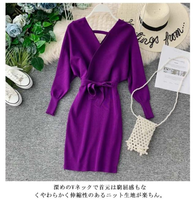 | スリムにフィットするワンピースです。 深めのVネックで首元は窮屈感もなくやわらかく伸縮性のあるニット生地が楽ちん。 長袖でさらにロングな丈で美脚効果もあり ウエストにベルトをマークしたり、スカーフと合わせたりと様々に活用できるアイテムです♪ | |