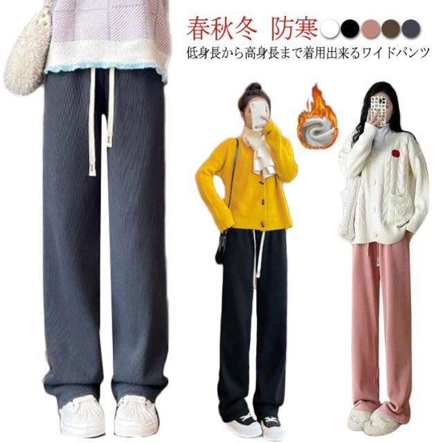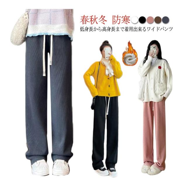 ワイドパンツ レディース 春秋冬 裏起毛 コーデュロイ リブ パンツ イージーパンツ あったかい 防寒 低身長 高身長 ワイド ゆったり 体型カバー きれいめ 大きいサイズ カジュアル 無地 通勤 通学 おしゃれ 流行 大人可愛い ウエストゴム 送料無料