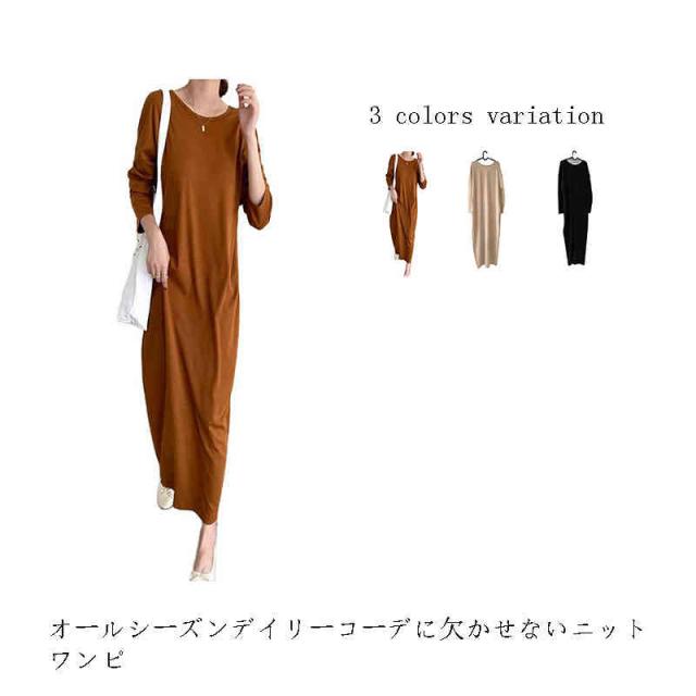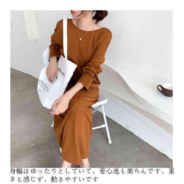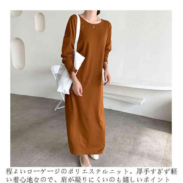 | オールシーズンデイリーコーデに欠かせないニットワンピ 程よいローゲージのポリエステルニット。厚手すぎず軽い着心地なので、肩が凝りにくいのも嬉しいポイント 身幅はゆったりとしていて、着心地も楽ちんです。重さも感じず、動きやすいです ボリュームがあってあったかい!締め付け感はありません パンツやスカートをチラ見せして合わせるのも良さそう | |