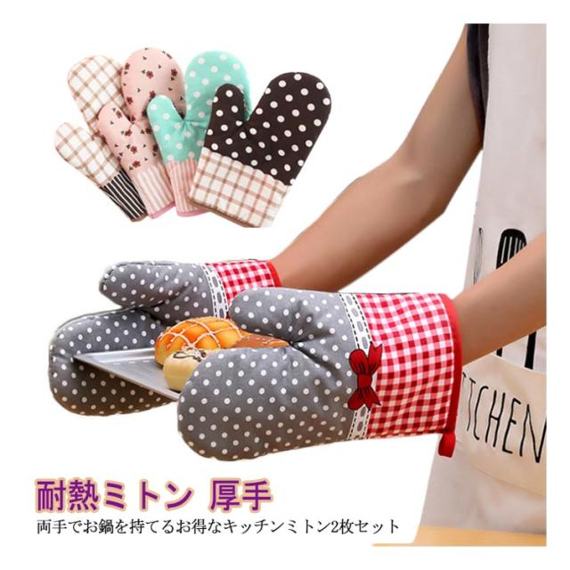 オーブンミトン 耐熱 キッチンミトン 2枚セット かわいい キッチン ミトン 鍋つかみ オーブンミトン 鍋掴み 耐熱ミトン 鍋 つかみ コットン 北欧風 厚手 オーブン ミット なべつかみ キッチンツール ギフト プレゼント 送料無料