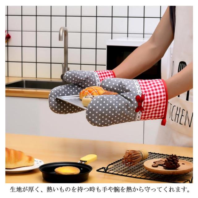 | 両手でお鍋を持てるお得なキッチンミトン2枚セット 生地が厚く、熱いものを持つ時も手や腕を熱から守ってくれます。 熱した容器の取り出しや冷凍品の取り扱いなど、幅広くお使い頂けます。 収納に便利な吊り下げ用のストラップ付き、使わない時はキッチンの壁に掛けることができます。 可愛くて洗練されたデザイン、キッチンをオシャレに演出してくれます! お料理好きな方へのプレゼントとしてもピッタリです! | |