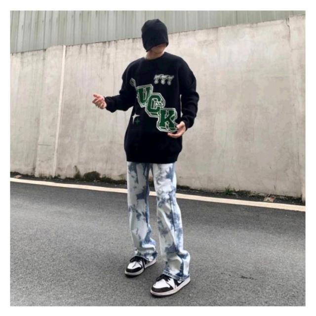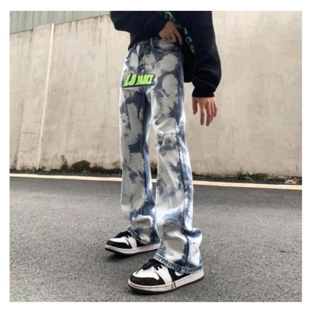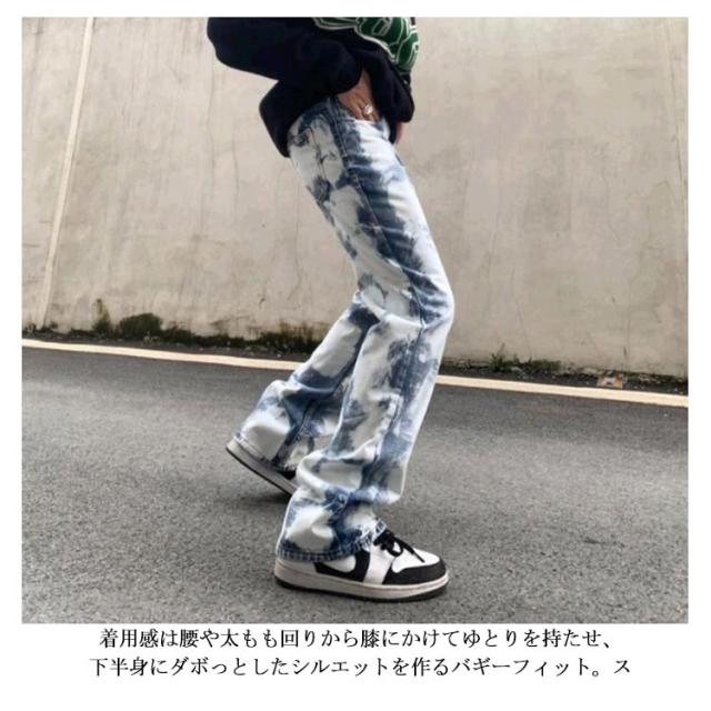 刺繍 デニムパンツ タイダイパンツ メンズ 大きいサイズ デニム ジーンズ メンズ レディース 黒 大きいサイズ ジーパン Gパン ゆったり 太め バギー パンツ おしゃれ かっこいい デニム グラフィティ ヒップホップ ファッション ロック