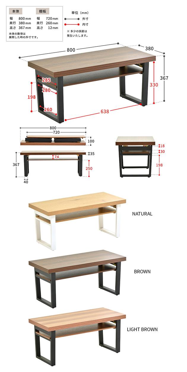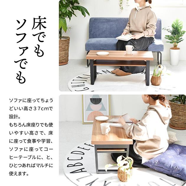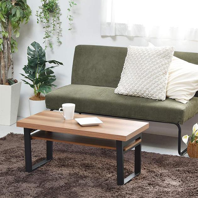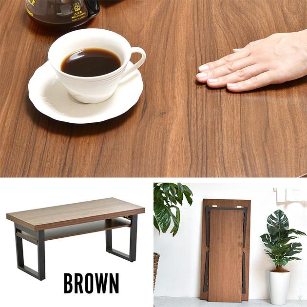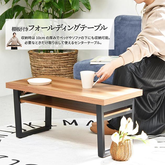 テーブル おしゃれ 棚板付きフォールディングテーブル 3色 机 アジャスター付き センターテーブル コーヒーテーブル 折り畳み 収納可能 スタイリッシュ