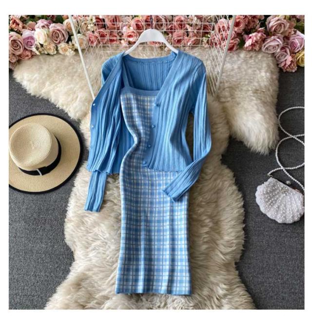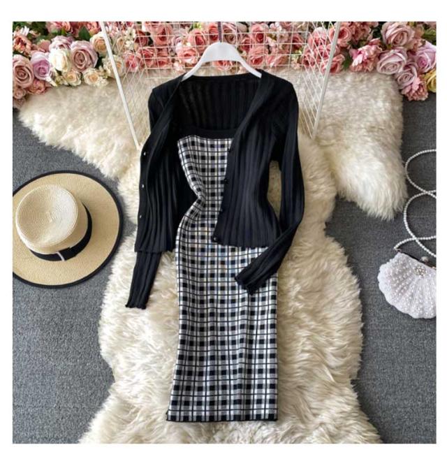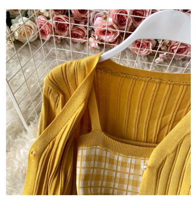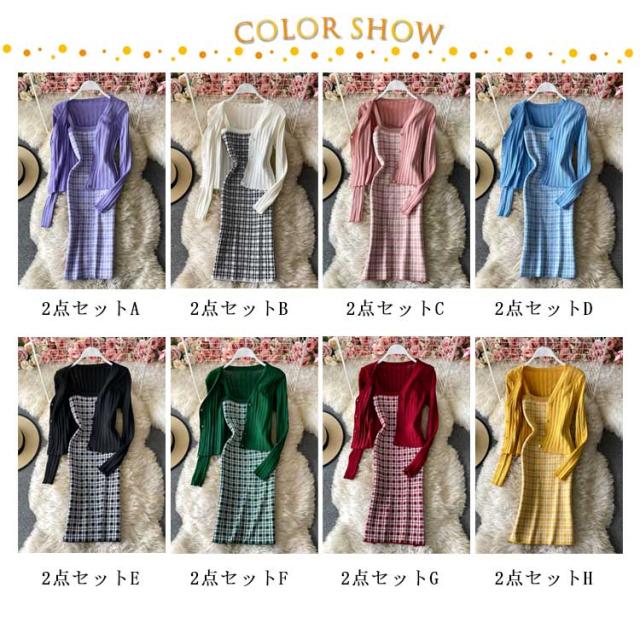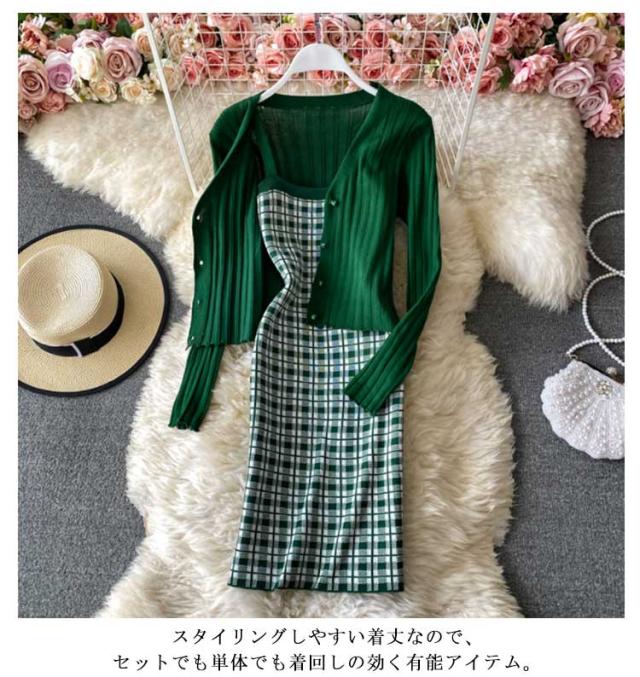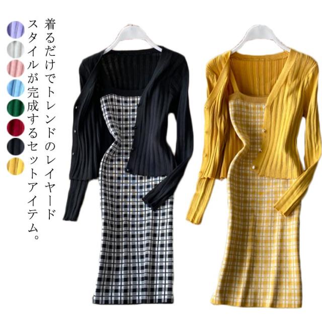 2点セット ニットカーディガンン+ニットワンピース 全8色 ニットセット ニットセーター セットアップ ワンピースセット キャミソール カーデ カジュアル ナチュラル エレガント 送料無料 体型カバー 着痩せ 上品 春夏秋