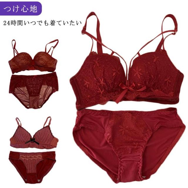 レットレースブラジャー セット ナイトブラ 上下セット ノンワイヤーブラ リラックスブラ レースブラ ナイトブラジャー パンツ ブラ セット 育乳ブラ ノンワイヤーブラジャー スポーツブラ 上下セット 送料無料