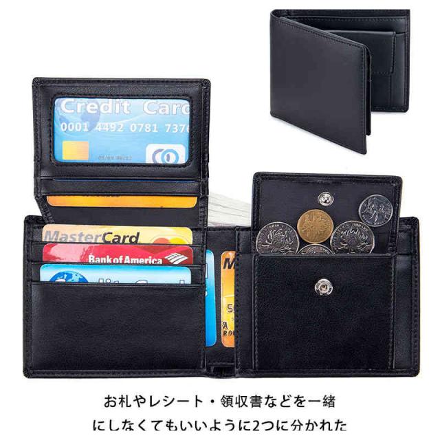 | 大満足の収納力でスマートにお洒落のメンズ財布 お札やレシート・領収書などを一緒にしなくてもいいように2つに分かれた札入れのデザインにしました スナップボタンがついて、カード入れをしっかり固定 コンパクトで大容量入るサイズ感。 カード収納枚数×10, コインケース×1 、お札収納×2 小銭が見やすく取り出しやすいように、マチを深く設計しました | |