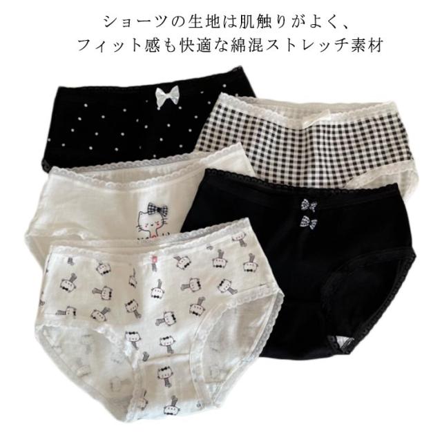 【5枚セット】【送料無料】 綿混ショーツ 福袋 お得な5枚組 レディース ショーツ 下着 ストレスフリー パンツ 水玉 キャラクター おしゃれ レース 無地 ストライプ