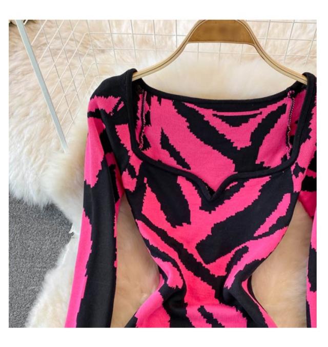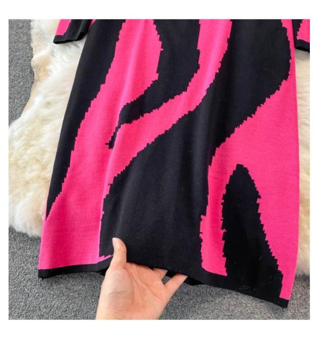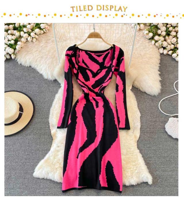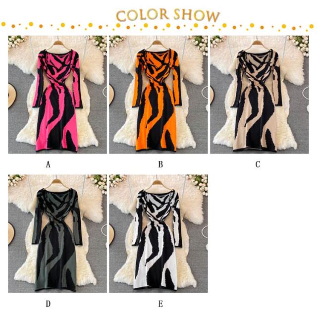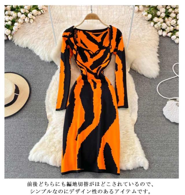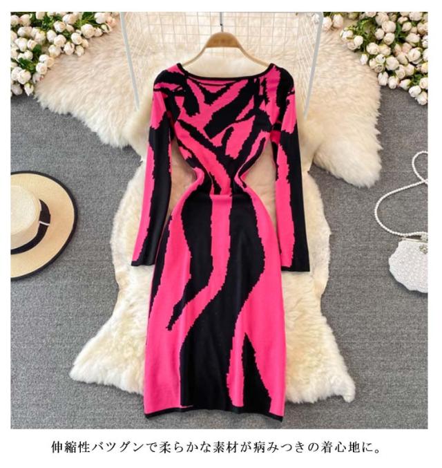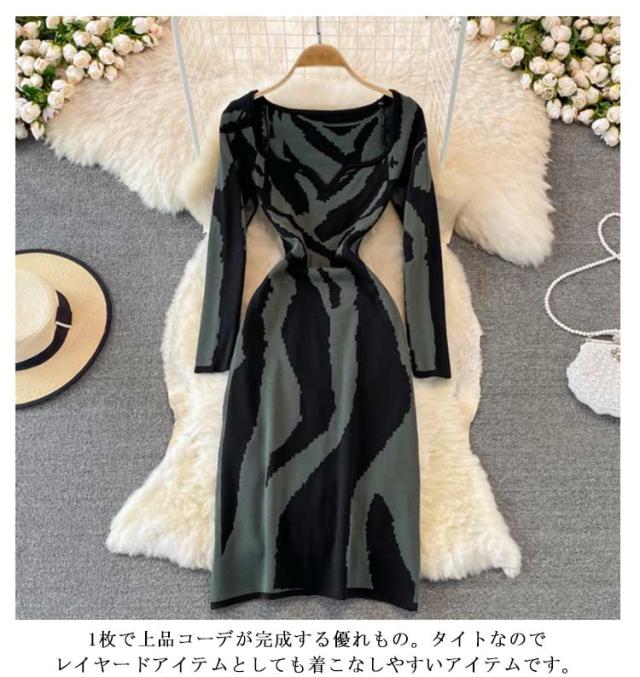 タイトニットワンピース タイトニット 総柄 タイトワンピース ロングニットワンピース Vネック 長袖 ニットワンピース ロング丈 タイト ひざたけ 膝丈 秋冬 春秋 ニット 無地 シンプル