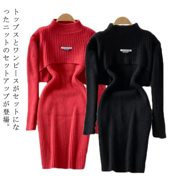 送料無料 ニット セットアップ ニットアップ レディース ワンピース ニットトップス 2点セット ニット キャミソールワンピース リブニット 無地 シンプル 上品 通勤 普段着 お洒落 謝恩会 披露宴 同窓会 女子会 結婚式