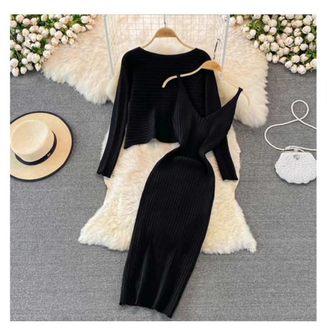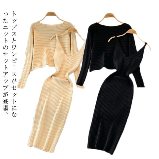 送料無料 ニット セットアップ ニットアップ レディース ワンピース ニットトップス 2点セット ニット キャミソールワンピース リブニット 無地 シンプル 上品 通勤 普段着 お洒落 謝恩会 披露宴 同窓会 女子会 結婚式