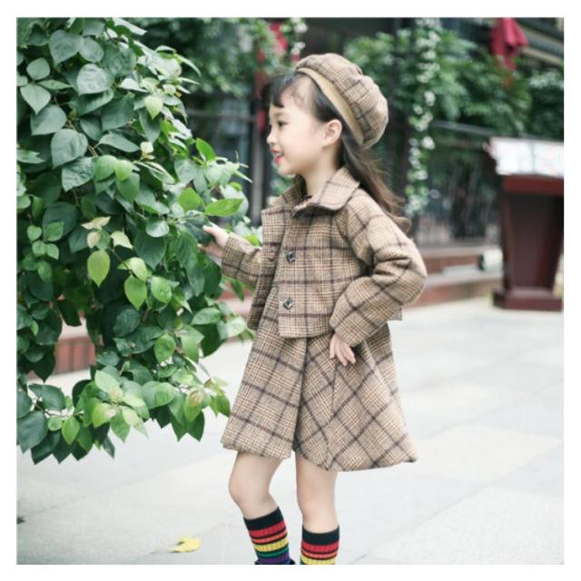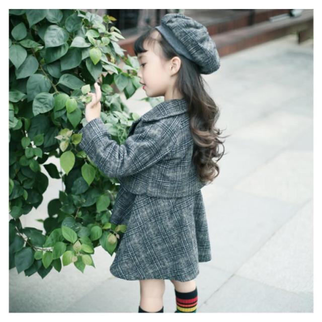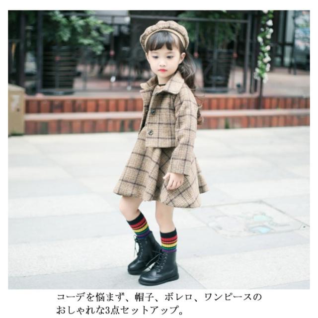 入学式スーツ 女の子 子供服 卒園式 ワンピース ボレロ セットアップ ジャケット アンサンブル ベレー帽 チェック柄 秋 冬 服 厚手 パーティー 結婚式 フォーマルスーツ 発表会 お宮参り 七五三 90 100 110 120 130cm