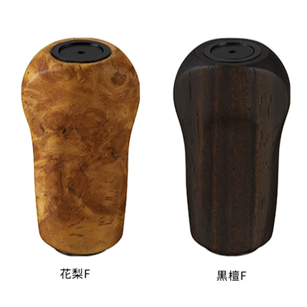 ●黒檀F(F=フラット=つや消しクリア塗装): 弦楽器のネックやピアノの鍵盤にも使われ「エボニー」という名称でも呼ばれている。 漆黒から縞模様のハッキリ出ている茶褐色までこちらも個体差があり、お好みの色合いを選ぶことができる。