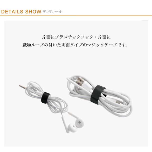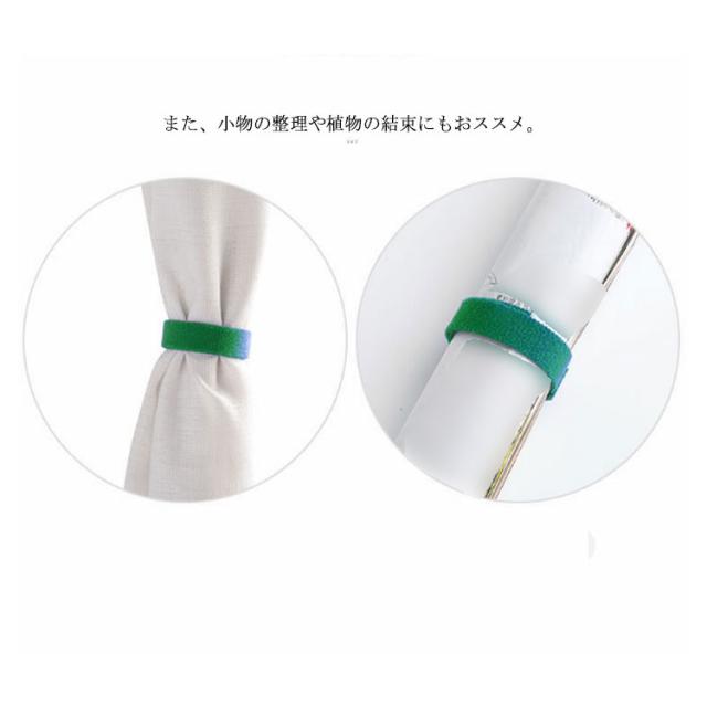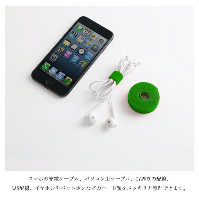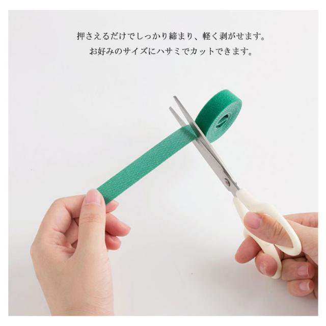 | 再利用が可能!両面タイプのマジックテープバンド! 片面にプラスチックフック・片面に織物ループの付いた両面タイプのマジックテープです。 プラスチックフックのため、強い係合力で結束に利用できます。 押さえるだけでしっかり締まり、軽く剥がせます。 お好みのサイズにハサミでカットできます。 スマホの充電ケーブル、パソコン用ケーブル、TV周りの配線、LAN配線、イヤホンやべットホンなどのコード類をスッキリと整理できます。 また、小物の整理や植物の結束にもおススメ。 | |