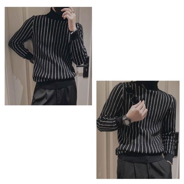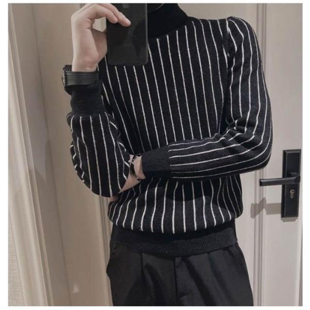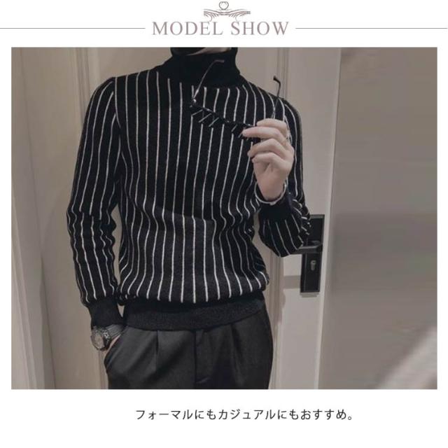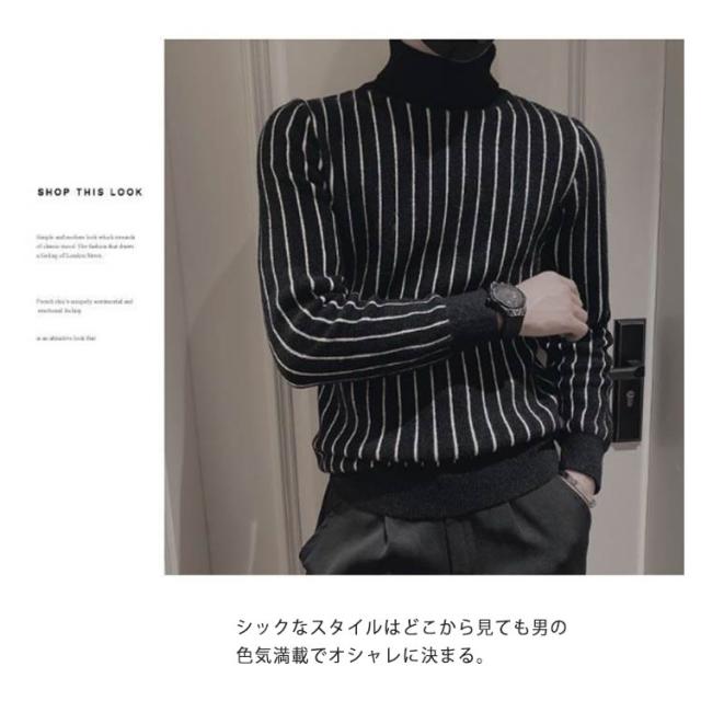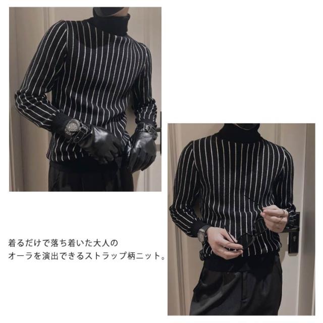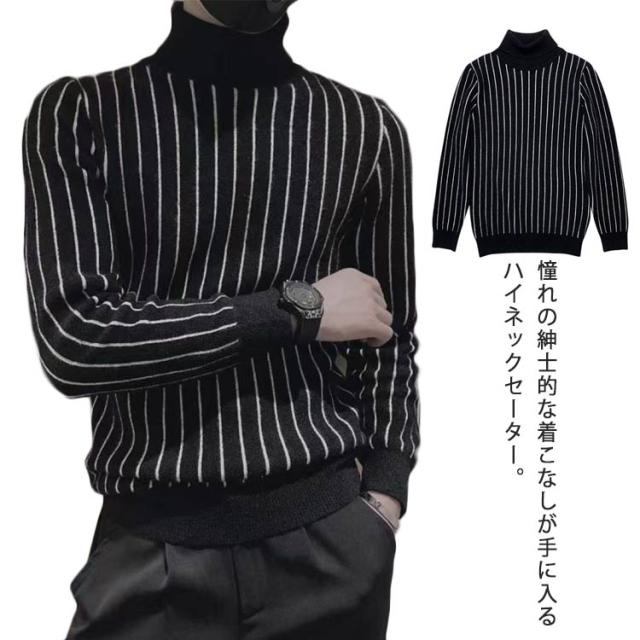 ニット メンズ タートルネック セーター 秋冬 春 スリム 厚手 ストラップ柄 インナー プルオーバー ハイネック ブラック 黒 長袖 トップス シンプル 通勤通学 カジュアル カットソー おしゃれ?暖かい 保温 ニット 送料無料