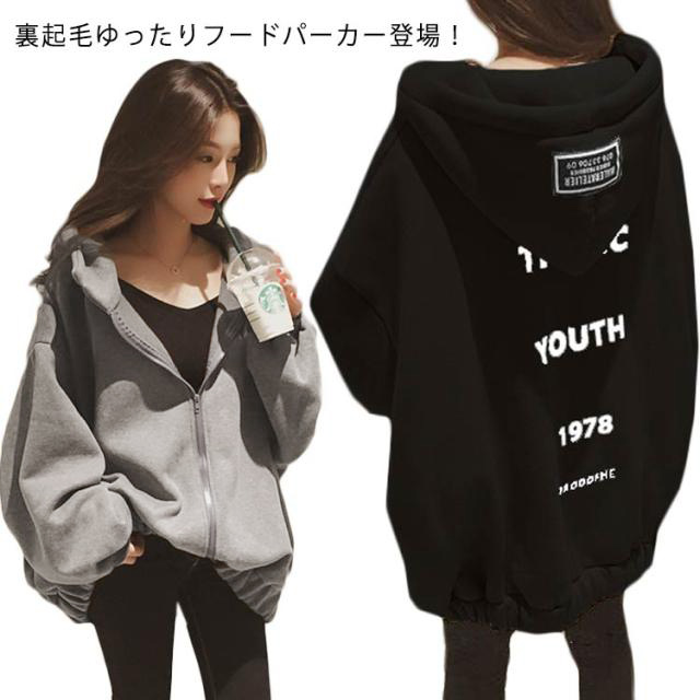 パーカー レディース ジップパーカー 大きめ 裏起毛 オーバーサイズ ビッグシルエット ビッグパーカー プルオーバー おしゃれ 冬 ビックサイズ あたたかい 防寒 ロング 長袖 フード付き カジュアル トップス ドロップショルダー アウター