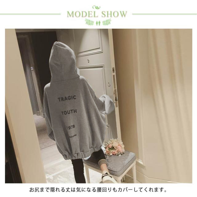| 裏起毛ゆったりフードパーカー登場! 裏起毛で暖かいオーバーサイズのパーカーはビッグサイズがかわいい。 お尻まで隠れる丈は気になる腰回りもカバーしてくれます。 ゆったり着こなすのがおしゃれ!ルームウェアにちょっとしたお出かけにぴったりのアイテムです。 | |