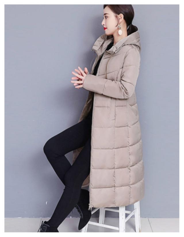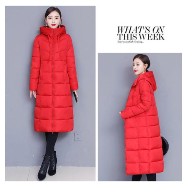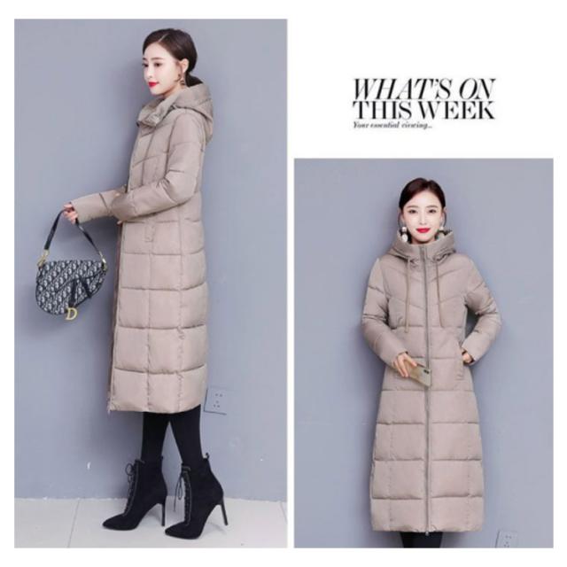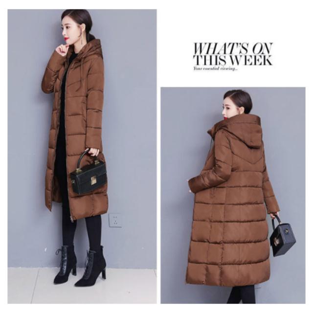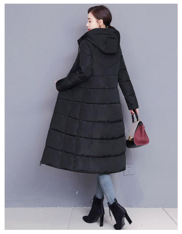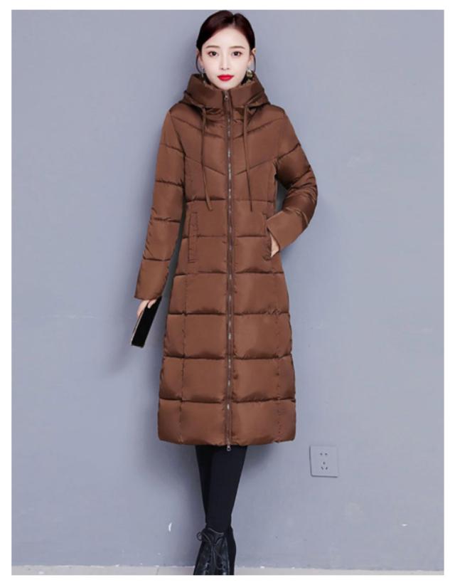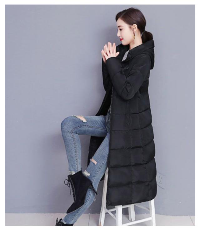 中綿コート レディース ロング丈 長袖 ファスナー フード付き ポケット付き 体型カバー アウター 防寒 暖かい カジュアル きれいめ 通勤 通学 女性 冬 無地 全6色